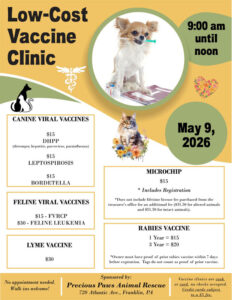 We are a 501(c)3 non profit animal foster/rescue organization located in Franklin, Pennsylvania. Founded in 2001, Precious Paws is dedicated to educating the public about proper pet care, preventing cruelty to animals, managing feral cat populations, offering low cost spay neuter services, and placing adoptable animals in forever homes. Our pet selection changes frequently and we maintain a list of available dogs from owners looking to rehome their pets as well as network with other rescues. Together, we can help you find the right pet for your family. Please do not purchase pets from a pet store or a breeder without first taking a moment to do some research (backyard breeders can be just as bad as puppy mills). We always need foster homes and volunteers for a variety of activities: grant writing, feral cat trapping, adoption counseling, post adoption follow-up, etc.