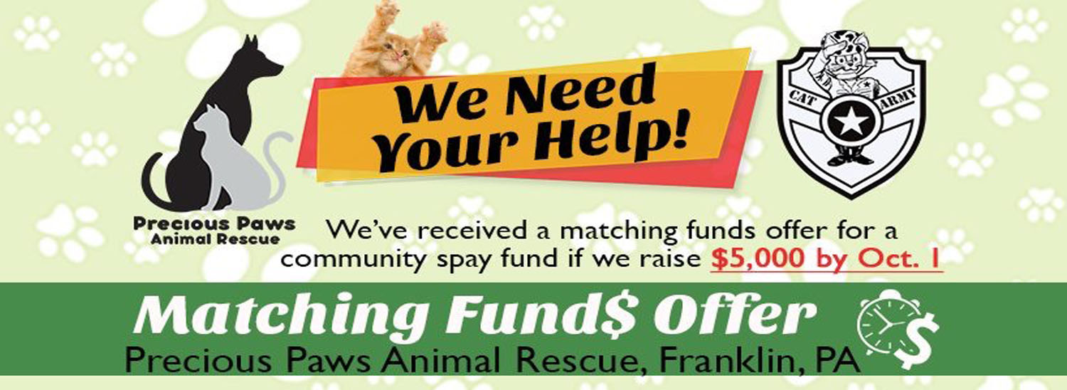 Not-For-Profit animal foster/rescue organization located in Franklin, Pennsylvania.